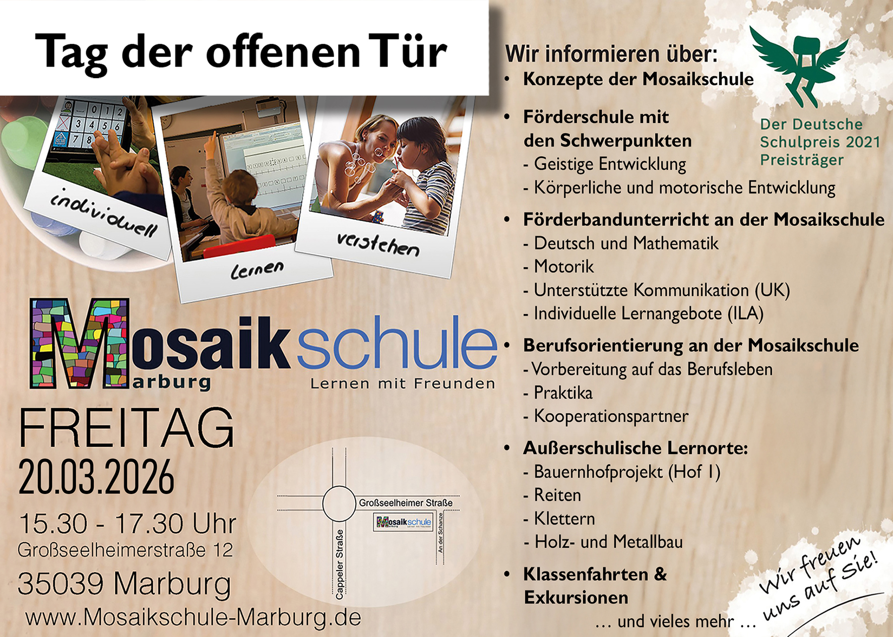 Der Schulneubau der Mosaikschule und dessen zeitnahe Umsetzung sind aufgrund der stetig steigenden Schülerzahl und der prekären räumlichen und baulichen Situation im aktuellen Schulgebäude zwingend erforderlich. Dazu stehen wir in einem intensiven Austausch und Planungsprozess mit der Stadt Marburg und insbesondere dem Fachdienst Hochbau. Ein pädagogisches Raumfunktionsbuch wurde bereits erstellt. Aktuell läuft die Vorbereitung des Architekturwettbewerbs. An den prozessbegleitenden Austauschtreffen nehmen von Seiten der Schule auch der Schulelternbeirat und der örtliche Personalrat teil.